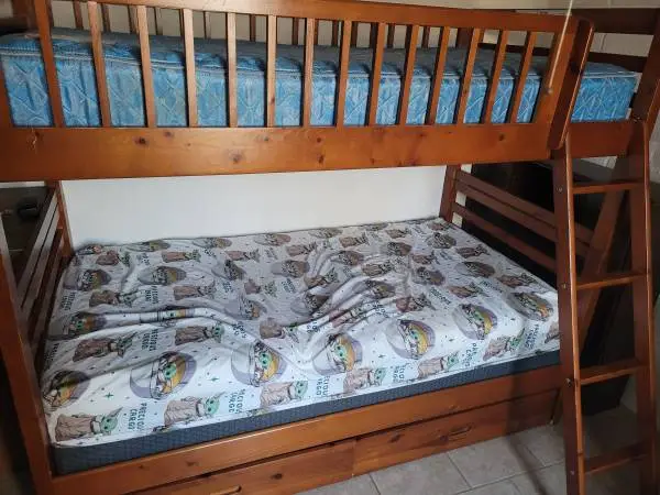 100% solid wood 9x3 farmhouse table and bench for sale. $500 OBO excellent condition. MPU payment due upon pickup