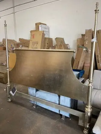 Online Price: $5000 Our Price: $350 NewHeadboard Only Call txt 440-539-0852 Handcrafted of hardwood solids. Hand-painted silver finish with gold undert 1 s and physical distressing. 84.75 W x 82.25 T. Imported.