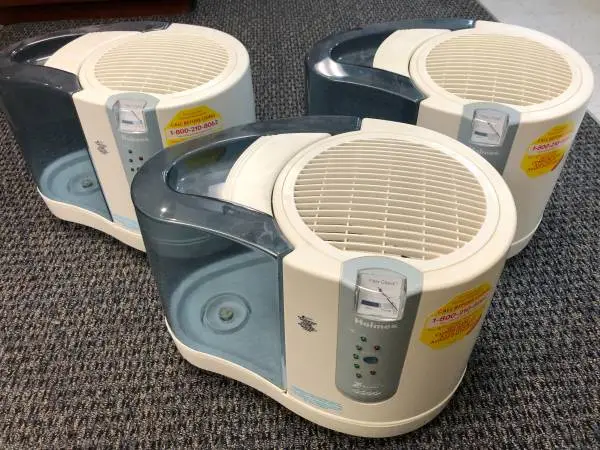 GET READY FOR WINTER. LIVE COMFORTABLY WITH PROPER INDOOR HUMIDITY! THREE(3), IDENTICAL, HOLMES EVAPORATOR HUMIDIFIERS WITH REPLACABLE ABSORPTION WICKS AND FILTERS. POWER BLOWER FANS FOR MAXIMUM AIR CIRCULATION. LARGE REFILLABLE WATER RESEVOIR WITH CARRYING HANDLE FOR EASY REFILL. VARIABLE, ELECTRONICALLY CONTROLLED HUMIDITY LEVELS FOR MAXIMUM COMFORT AND ELECTRONIC FILTER STATUS GUAGE FOR REAL-TIME FILTER MANAGEMENT. 120 VOLT A.C FOR COMMON RESIDENTIAL WALL OUTLET USE, 60 Hz, 0.5 AMPS FOR ECONOMIC, CONTINUAL USE WITH ECONOMICAL ELECTRICAL POWER CONSUMPTION. SELLING ALL THREE UNITS FOR $40.00 OR PURCHASE A SINGLE UNIT FOR $15.00. TEXTS AND PERSONAL PHONE CALLS WILL GET THE QUICKEST RESPONSE. LEAVE A DETAILED, VOICE MESSAGE IF WE ARE UNABLE TO TAKE YOUR CALL IMMEDIATELY AND WE WILL RETURN YOUR CALL PROMPTLY. E-MAIL COMMUNICATION WILL TAKE LONGER FOR A REPLY.