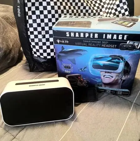 Sharper Image Smart phone 360 Virtual Reality Headset. Still in box, never used, it has clear lenses, works great. I am asking $15.00. Contact LIZ by phone, text or chat.