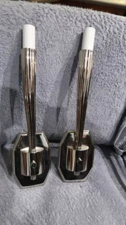I HAVE A MATCHING CHROME WALL LAMPS MADE IN USA. VERY HEAVY AND NICE. ALMOST 15 TALL. NABB IS 25 MILES NORTH OF LOUISVILLE. JUST NORTH OF CHARLESTOWN. phone OR TEXT. JANE. 502-291-0825