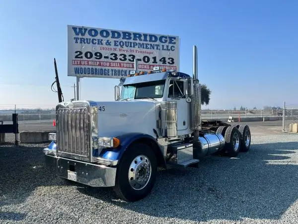 1997 Peterbilt 379 Extended Hood 3 Axle Day Cab Tractor ! Cummins A-60525 Hp. Eaton Fuller 13 Transmission, 3 Stage Jake Brake, 12,000 Lb. Front Axle, 40,000 Lb. Rears, Diff Locker, Dump Valve, Pete Low Air Leaf Suspension, 229 Wheel Base, 40 Sliding Fifth Wheel, Low Bed Ramps, Merritt Head Ache Rack, Dual Stacks, Dual Air Cleaners, Visor, All Aluminum Wheels , 11 R 24.5 Rubber, Dual 140 Gallon Tanks, American Class Interior, Heat/AC/AM/FM/CD, Cobra CB Radio, Cruise Control, Air Ride Seats, Air Ride Cab, Good Condition, 1,412,583 Miles Nice Long Hood Peterbilt. $45,500 Call Brad 209-333-0143 Cell; 209-337-5343 More truck s, tractors, trailers and equipment at www.woodbridgetruckandequipment.com peterbilt, 379, fr 8 liner, international, dump truck, roll off, kenworth, w 900, mack, volvo sterling, Cat, diesel, semi truck, big rig, classic, peterbuilt, detroit, cummins, 18 wheeler trailer, flat bed, roll back, dumpster, trash truck, bin, KW, pete, container, big truck, water truck watertruck, roll off, volumetric mixer, concrete batch plant t 800 long hood extended hood, cozad low boy cozad low bed murrary low boy murrary murray low bed, westmark blower trailer pneumatic bottom dump 10 wheel dump super dump, equipment trailer motor grader backhoe landol landoll sliding axle rear loader front loader trash truck side loader garbage truck cart bin tipper fork lift forklift mounting kit john deere CAT boxvan box van tool truck construction contractor cattle hauler cattle semi pull trailer west mark water truck food truck tool truck mac tool snap on tools taco truck Classic 379 fr 8 liner classic classico 387 fr 8 liner fld 120 peterbilt peterbilts kenworth ken 2 rth hino diesel diesels hinos all riggs end dump bottom dump volteos volteo torton Def epu pto classics all 2012200020152016379 california dealer no rust clean California truck long hood extended hood farm tractor nice pete all aluminum tree grinder grinding tub grinder