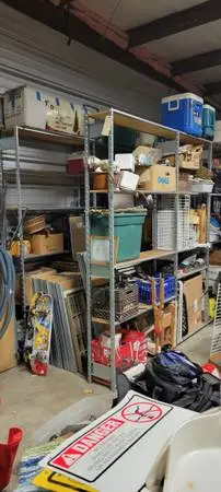 10 Commercial Shelving Heavy Duty 8 Ft Tall Sections. Shelves 36 and 48 x 12 wide. No Nuts and bolts slip in lock system. Extra Shelves. $750 Calls Only